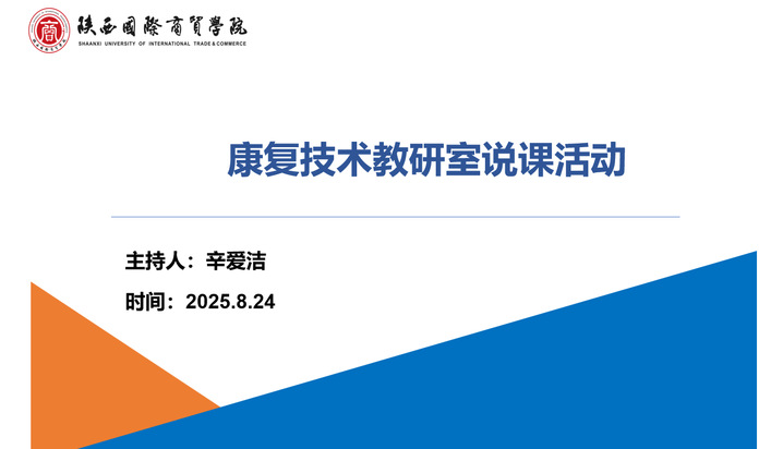 提升青年教师的教学水平,进一步改进教学方法,明确授课的技巧、重点与难点,优化考核方法,改进教学设计,理清教学思路,细化教学流程,将思政元素合理融入课堂教学,并将AI相关最新技术融入教学设计以期提升教学质量,康复技术教研室于202582414:00组织8位教师开展了说课活动首先由教研室主任辛老师,讲解了说课的流程和注意事项,强调要将课程的重点内容介绍清楚,理清教学思路,讲明白教学设计的思路、思政元素的融入方法、教学过程的实施方法、考核的方式、新技术的融入方法等等