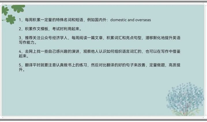 随后,罗佳佳同学结合自身实战经验对英语四级和六级的试卷结构与分值比例做了详细介绍,通过PPT图文结合的形式,直观地向同学们展示了在英语四六级考试中常见的题型设置、考试流程和答题顺序。她结合自己的备考经验对作文、听力、阅读、翻译四种题型的做题技巧进行详细解说,同时分析了四六级考试中写作部分的相关数据,着重讲解了试题的出题思路、平时的学习方法、试题的模版框架等内容。她建议同学们要注重平时的积累,并具备将知识转化成自己语言表达的能力。最后,她说到备考英语四六级要具备较大的词汇量,所有的应试技巧都是建立在词汇的基础之上,同时向同学们分享了自己学习英语中所遇到的高频词汇的总结,鼓励同学们尝试“精听精练”,希望同学们认真备考。
