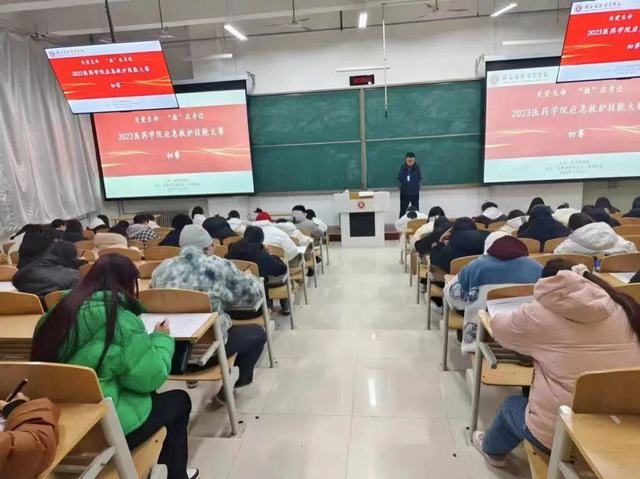 为牢固树立健康第一的教育理念,营造“人人学急救,急救为人人”的校园急救氛围,医药学院于12月14日举办2023年关爱生命“救”在身边——应急救护技能大赛。以提升学生健康素养为核心,普及急救知识和技能为重点,提高校园应急救护能力为目标,深入开展急救知识普及、急救设施配备、救护技能培训等工作,普及急救知识。本次活动由医药学院护理教研室主办,医药学院团总支和护理协会协助举办,旨在通过比赛的形式,让护理学专业学生在竞技中学习应急救护知识,巩固应急救护技能,加强师生互动,营造良好的教学氛围,增强学生社会责任感和尊重生命、珍爱生命的意识。
