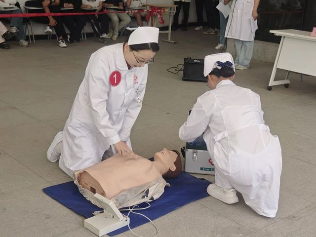 此次比赛由护理教研室王艺宝老师主持,首先由院长王飞娟进行发言,随后赵花云老师宣读比赛规则。比赛开始现场气氛紧张而热烈,选手们个个精神饱满、斗志昂扬。在护理技能比赛环节,他们熟练地展示着静脉输液、伤口包扎等专业操作,每一个动作都精准到位,充分体现了扎实的专业功底和严谨的职业态度。而在应急救护技能比拼中,选手们面对模拟的突发状况,临危不乱,迅速而准确地进行心肺复苏、海姆立克急救法等操作,展示出了卓越的应急反应能力和救护技能。