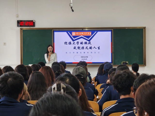 讲座在热烈掌声中开启,李老师以“认知我的大学”破题,阐述大学本质与精神内涵,结合校史、学科、师资及社会期待,助新生认清平台机遇与责任,建立对母校的归属感和自豪感。针对新生过渡期的迷茫,讲座第二部分“适应我的大学”,从学习方法、人际关系等多维度,用案例与互动,分享融入新环境、利用资源、平衡学与社团的技巧,鼓励大家主动尝试,找到适合自己的节奏。作为整场讲座的核心与升华,“规划我的大学”部分为同学们指明了前行的方向。主讲李老师系统介绍了职业生涯规划的基本方法,引导大家从自我认知和外部环境探索两个层面进行深入思考,逐步将朦胧的梦想转化为清晰可行的阶段性目标。李老师勉励大家,大学四年转瞬即逝,唯有早思考、早规划、早行动,将宏观目标分解为每一学年的具体任务,才能不负韶华,为未来的职业发展乃至人生道路奠定坚实的基石。