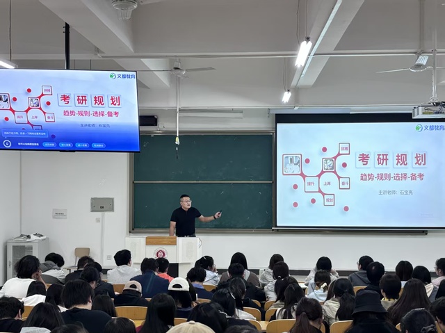 为助力大生学子锚定考研目标、科学描绘备考蓝图,医学院邀请文都考研于10月15日在2J127教室举办考研规划培训会。大三年级学生踊跃参与,现场研讨氛围十分热烈。